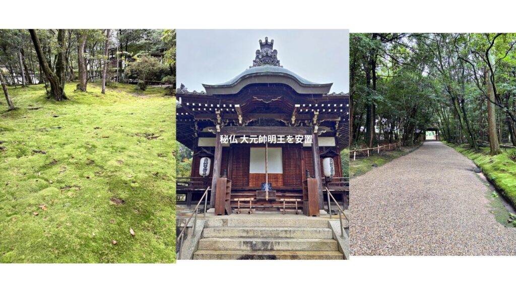 苔に囲まれた境内、どこにも属さない寺院の在り方。