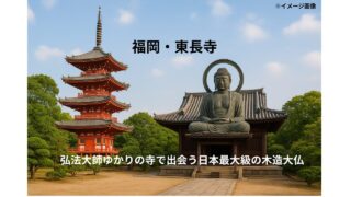 仏像巡り(ひとり旅) 博多・東長寺|弘法大師ゆかりの寺で出会う福岡大仏と心が整う時間 博多・東長寺は弘法大師が創建した福岡最古の真言宗寺院。日本最大級の木造大仏や六角堂など、都会の中で心が整う見どころをご紹介します。 2025.10.15 仏像巡り(ひとり旅)