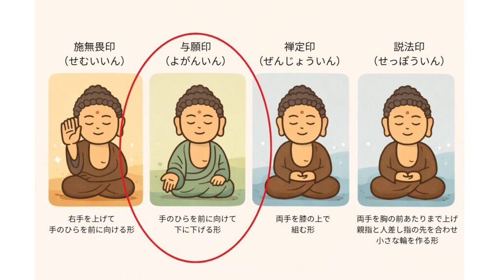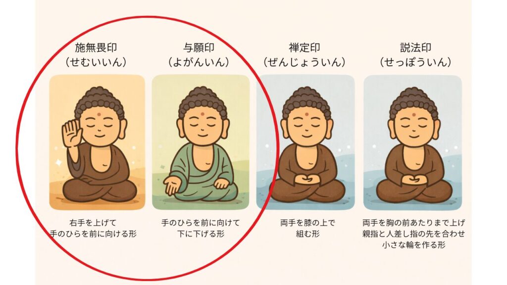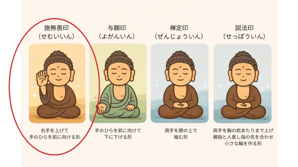 仏が人々に安心を与える姿を表しています。