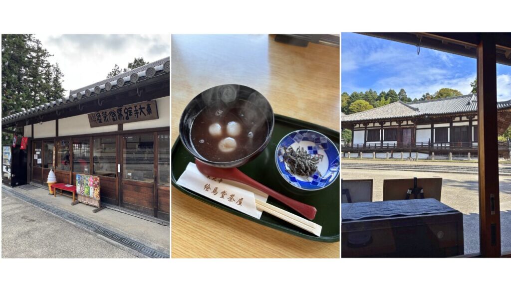 余韻を味わうひととき|三月堂を眺めながらのぜんざい