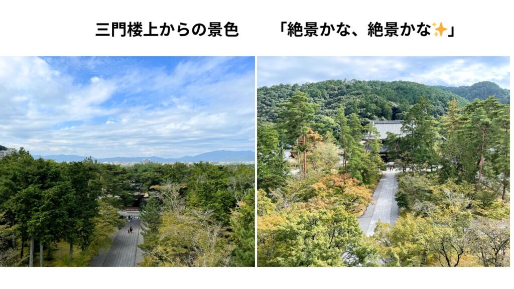 南禅寺は伽藍全体の“禅の空気感”が魅力。方丈内の障壁画や庭園の配置が仏教的な世界観を表し、三門からは古都の紅葉が一望できます。