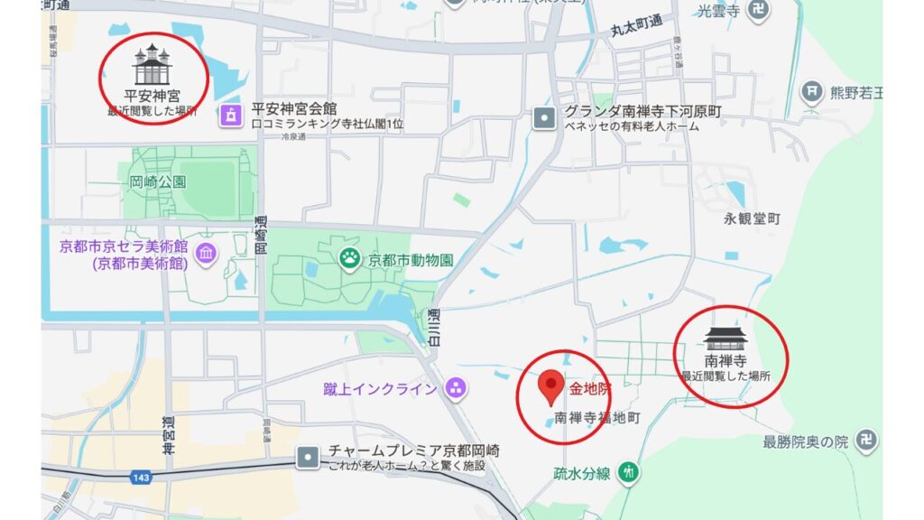 また、南禅寺から平安神宮までは、バスが便利ですが、徒歩でも約20分ほどで着きます。