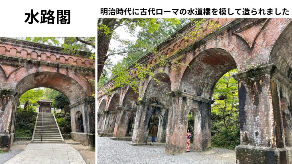 南禅寺の三門は江戸時代に再建された禅宗様の美しい建築で、歌舞伎の名セリフ「絶景かな、絶景かな」で有名な絶景スポットです。