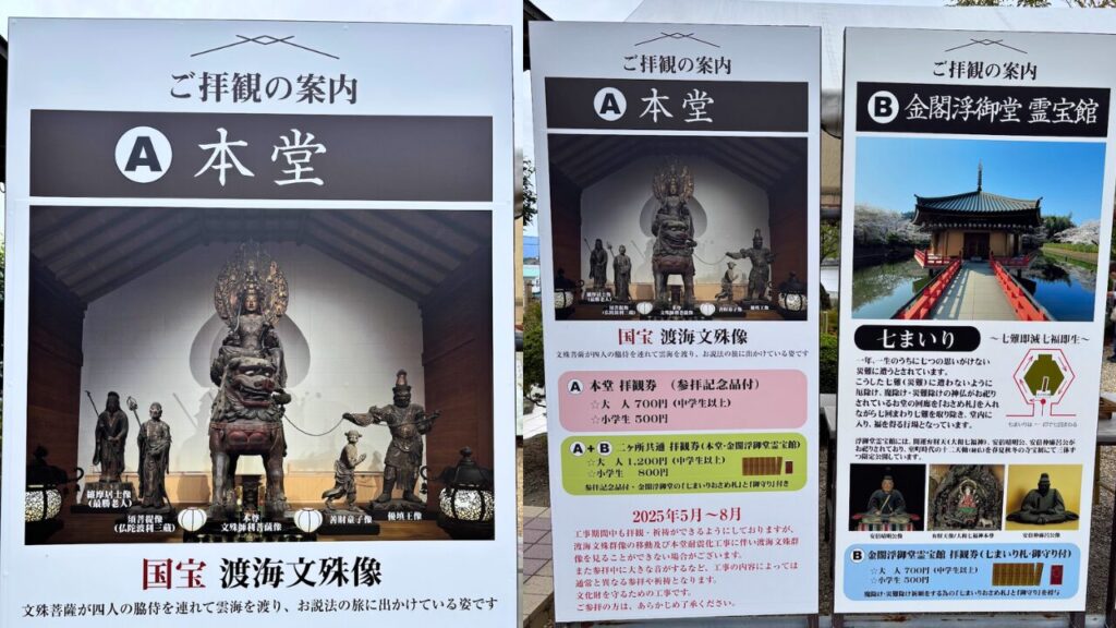 本尊の 騎獅文殊菩薩像 をはじめ、国宝の五躯からなる 渡海文殊群像 ――雲海を渡って衆生の迷いや無明を断ち、智慧を授ける姿――に対面する時、その大きさと厳かな佇まいは、訪れる者の心に静かな感動と安らぎを与え、「自分にとっての答え」を見つめ直すきっかけになります。
