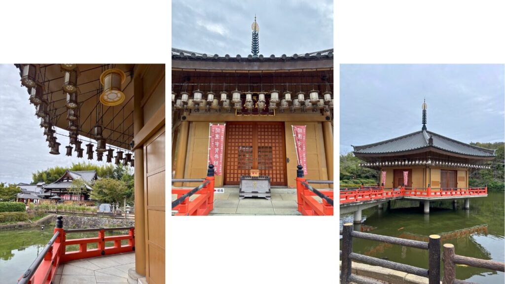 さらに、金閣浮御堂、古墳、白山堂、さらには季節ごとに彩りを変える境内の自然と、さまざまな「祈りのかたち」に触れられるこの寺院は、学業成就・厄除け・人生の節目の願掛けなど、訪れる人の思いや願いをやさしく受け止め、「心を静かに整える旅」にふさわしい、奈良随一の “知と癒しの聖地” です。