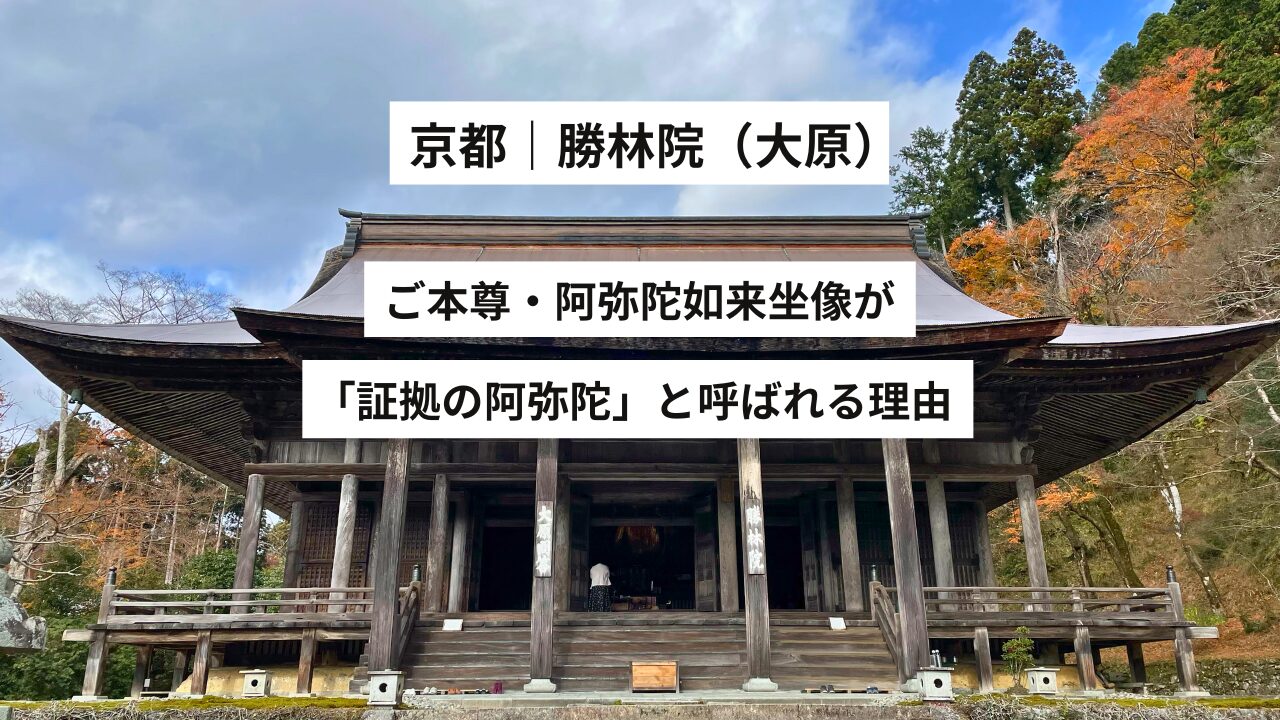 - 勝林院阿弥陀如来は、法然上人が1186年(文治二年)に各宗派の高僧と「大原問答」を行った際、本尊が光を放ち、法然の主張が正しいことを証明したと伝わることから「証拠の阿弥陀」と呼ばれるようになりました。