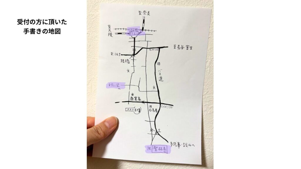 徒歩で帰ることを伝えると、手書きの地図までいただき、温かいお心遣いに感激しました。