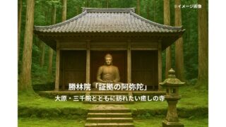 寺院ガイド(所蔵寺院) 勝林院「証拠の阿弥陀」|大原・三千院とともに訪れたい癒しの寺 京都・大原の「勝林院」は、声明(しょうみょう)の根本道場として知られる天台宗の古刹。本尊・阿弥陀如来坐像が穏やかな微笑みで訪れる人を包みます。三千院とあわせて、静寂の中で心が整う拝観を。 2025.10.16 寺院ガイド(所蔵寺院)