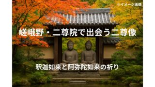 寺院ガイド(所蔵寺院) 嵯峨野・二尊院で出会う二つの仏の姿|釈迦如来と阿弥陀如来 京都嵯峨野の二尊院は、釈迦如来と阿弥陀如来の二尊像で知られる寺院。庭園や紅葉の美しさも魅力で、静かな参拝体験を楽しめます。 2025.09.18 寺院ガイド(所蔵寺院)