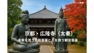 寺院ガイド(所蔵寺院) 京都・広隆寺で出会う弥勒菩薩と観音さま|太秦に息づく古代仏の微笑み 広隆寺(京都・太秦)は日本最古級の仏像を所蔵する寺院。微笑みをたたえる弥勒菩薩半跏思惟像と、不空羂索観音菩薩の魅力を解説し、拝観のコツや周辺観光もまとめました。 2025.09.13 寺院ガイド(所蔵寺院)