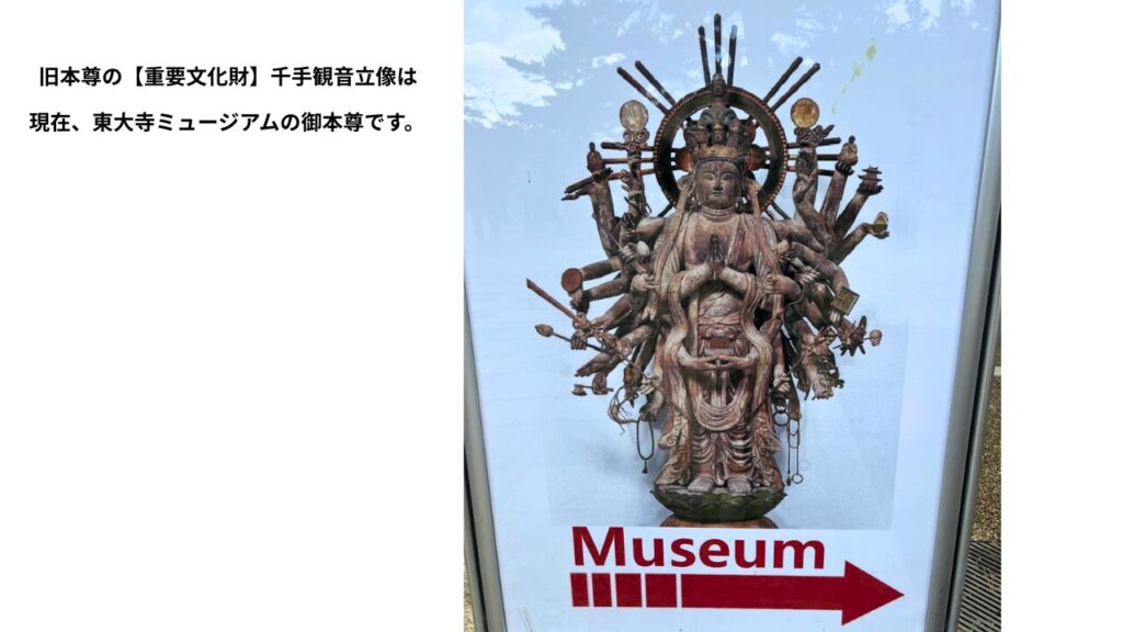 - (※旧本尊の【重要文化財】千手観音立像は東大寺ミュージアムに移動)↓