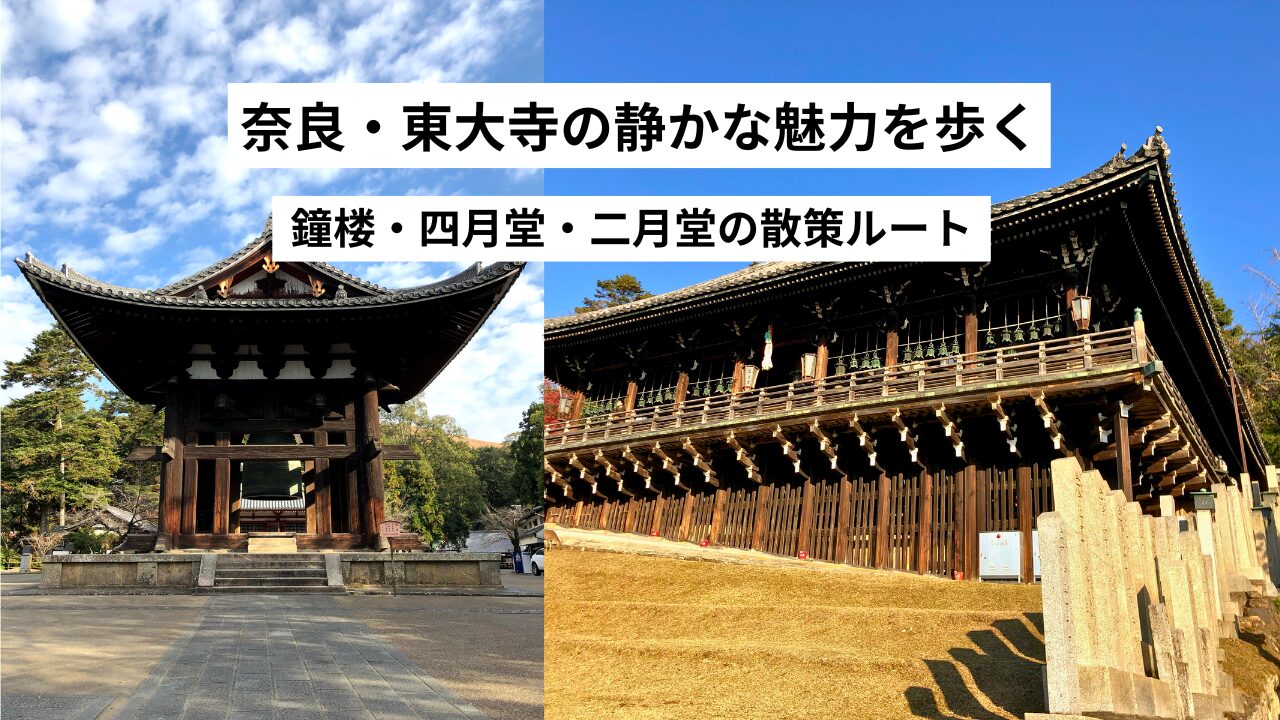 This article introduces a peaceful walking route through Todaiji in Nara, focusing on the Bell Tower, Shigatsudo, and Nigatsudo. Visitors can admire the National Treasure bell, the quiet hall of the Eleven-faced Kannon, and enjoy panoramic views from Nigatsudo. Perfect for solo travelers seeking a deeper, more serene experience of Todaiji beyond the famous Great Buddha Hall.