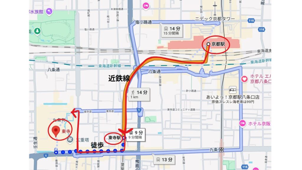 - アクセス: 京都駅から近鉄京都線で1駅(約2分)→「東寺駅」下車、徒歩約10分